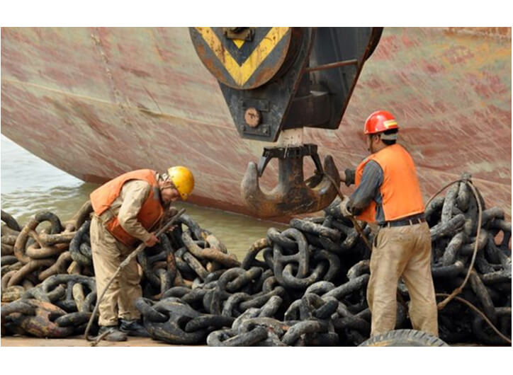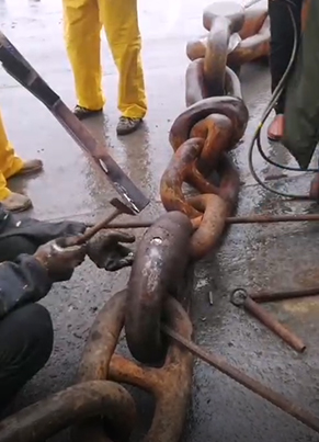 锚是一种钢铁制造的停船器具,没有锚,船舶就无法停稳。而对于链接船舶与锚的锚链,则更为重要,没有锚链,锚就与船舶无法连接,锚的作用也就失去了意义。有时,船舶与船舶之间的锚链会因为各种原因相互缠绕在一起。
